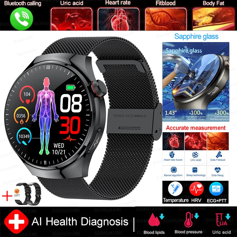 2025 Fashion New Men Dody Health Monitoring Smart Watch Blood Pressure Blood Lipid Uric Acid ECG+PPG NFC HD Bluetooth Call Watch